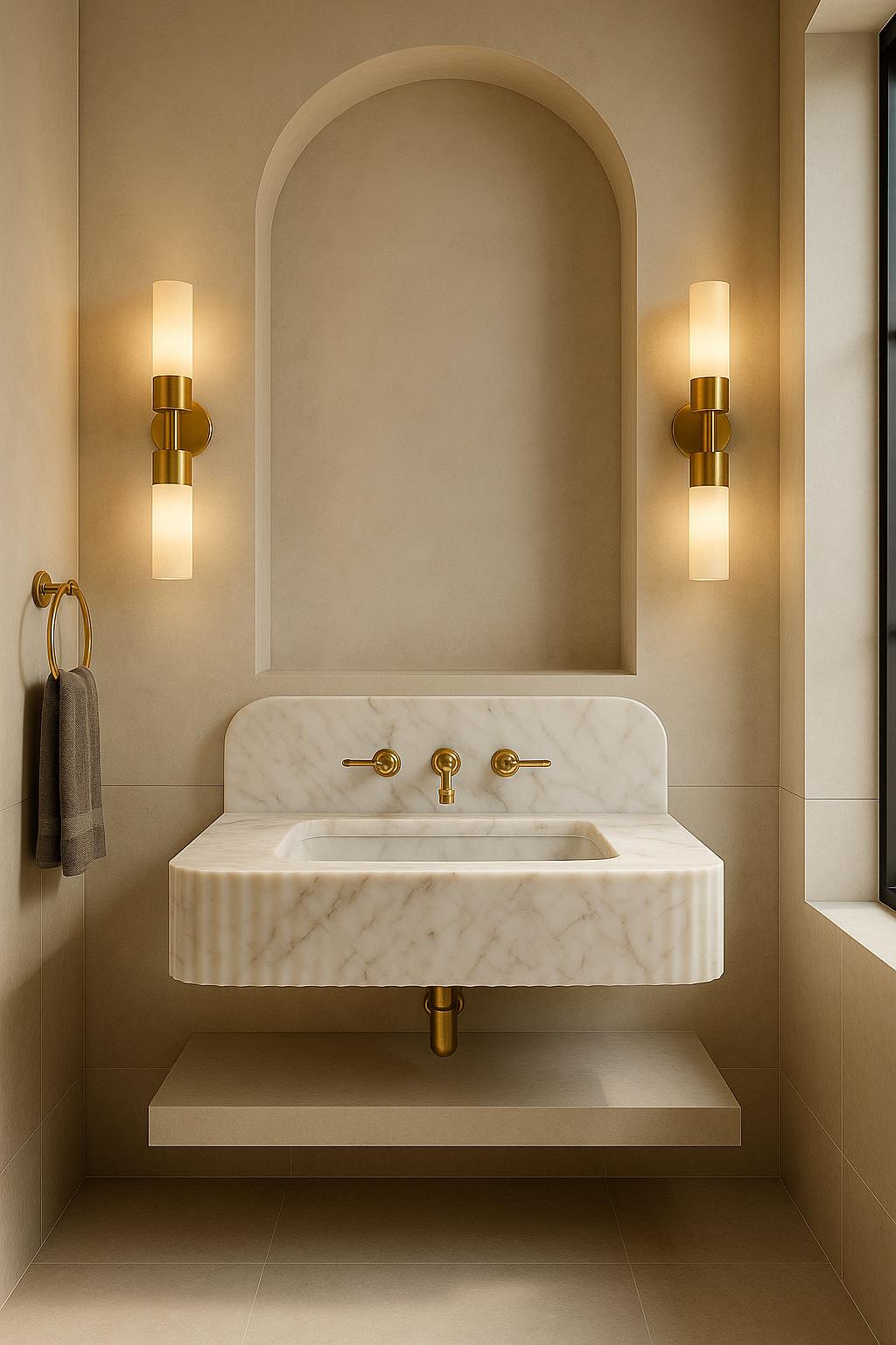 This sculptural marble sink is designed to transform any bathroom into a luxurious retreat. Featuring a fluted front panel, integrated marble backplate, and clean wall-mounted installation, this sink is a perfect blend of modern minimalism and timeless elegance.