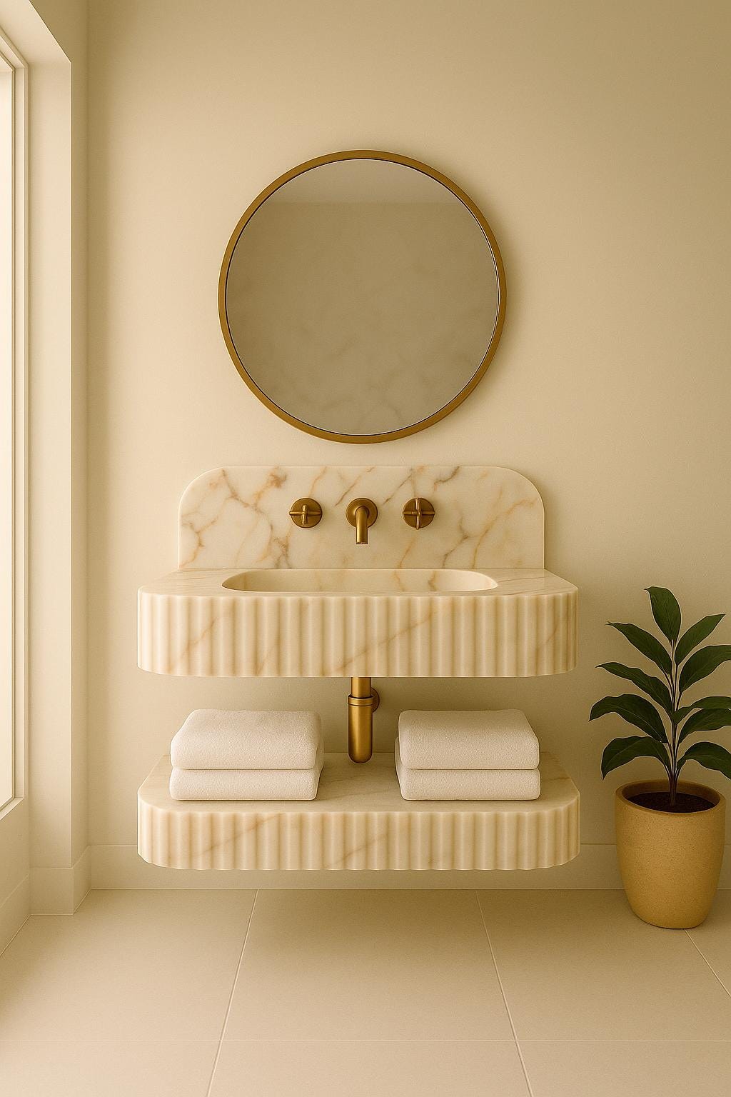 Luxury Wall-Mounted Marble Sink – Fluted Design | Calacatta gold and Afyon gold