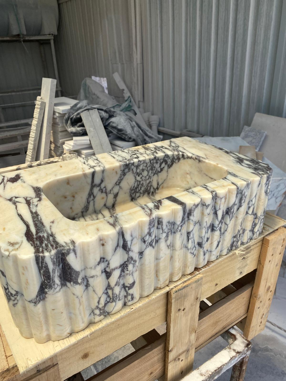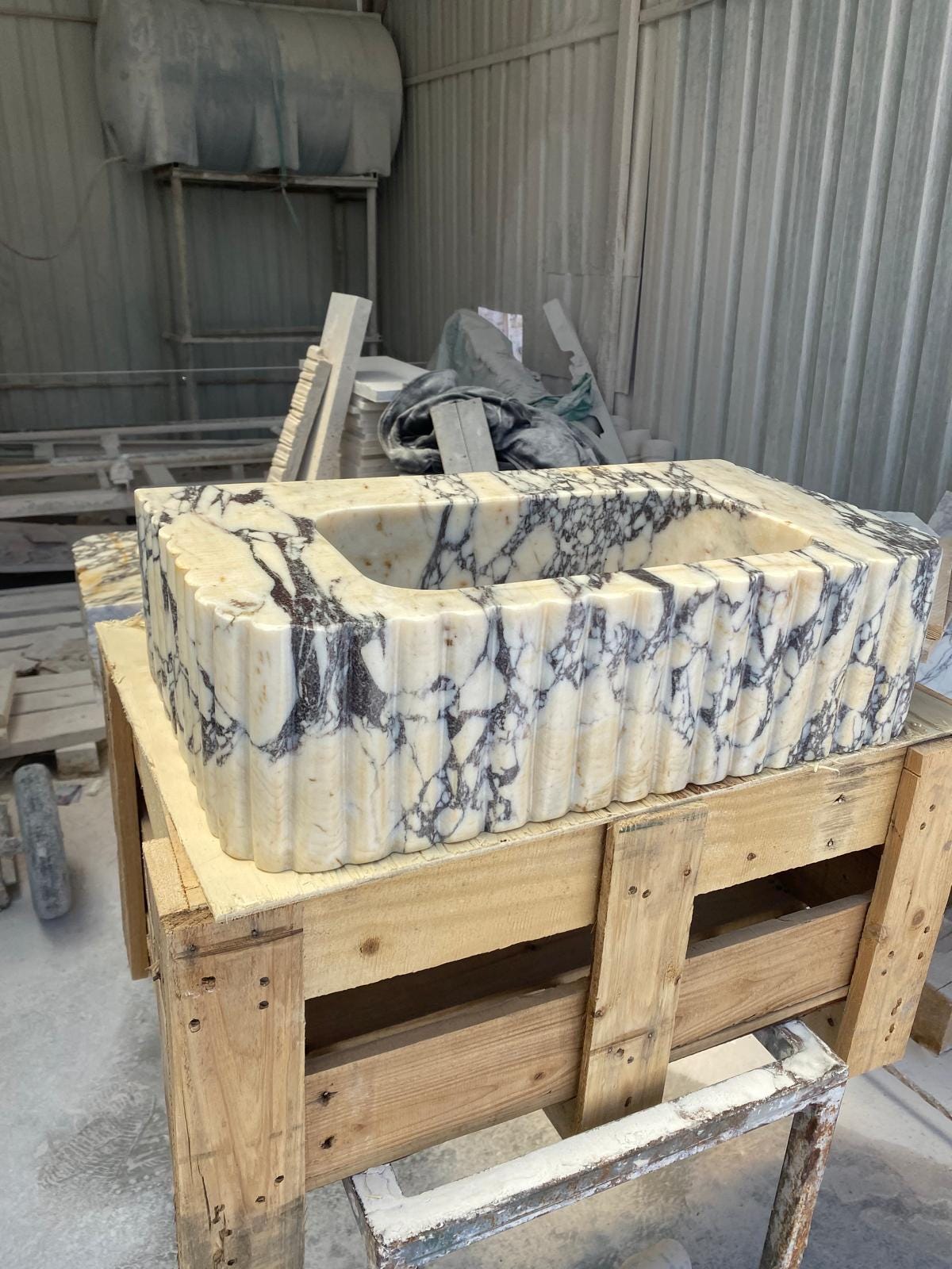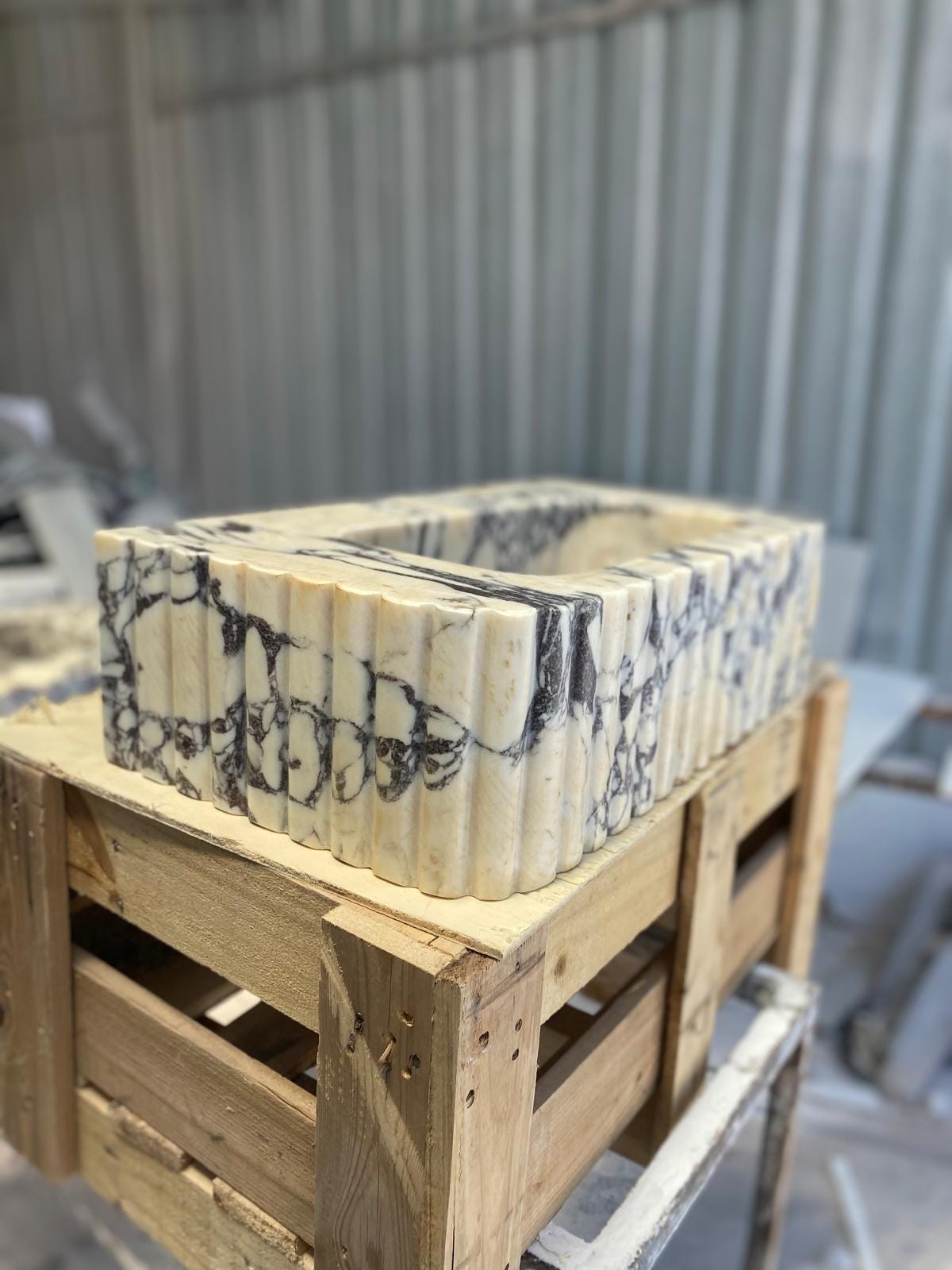 Hand-Carved Marble Sink | Fluted Front | Bold Veining | 22” x 14” x 6”