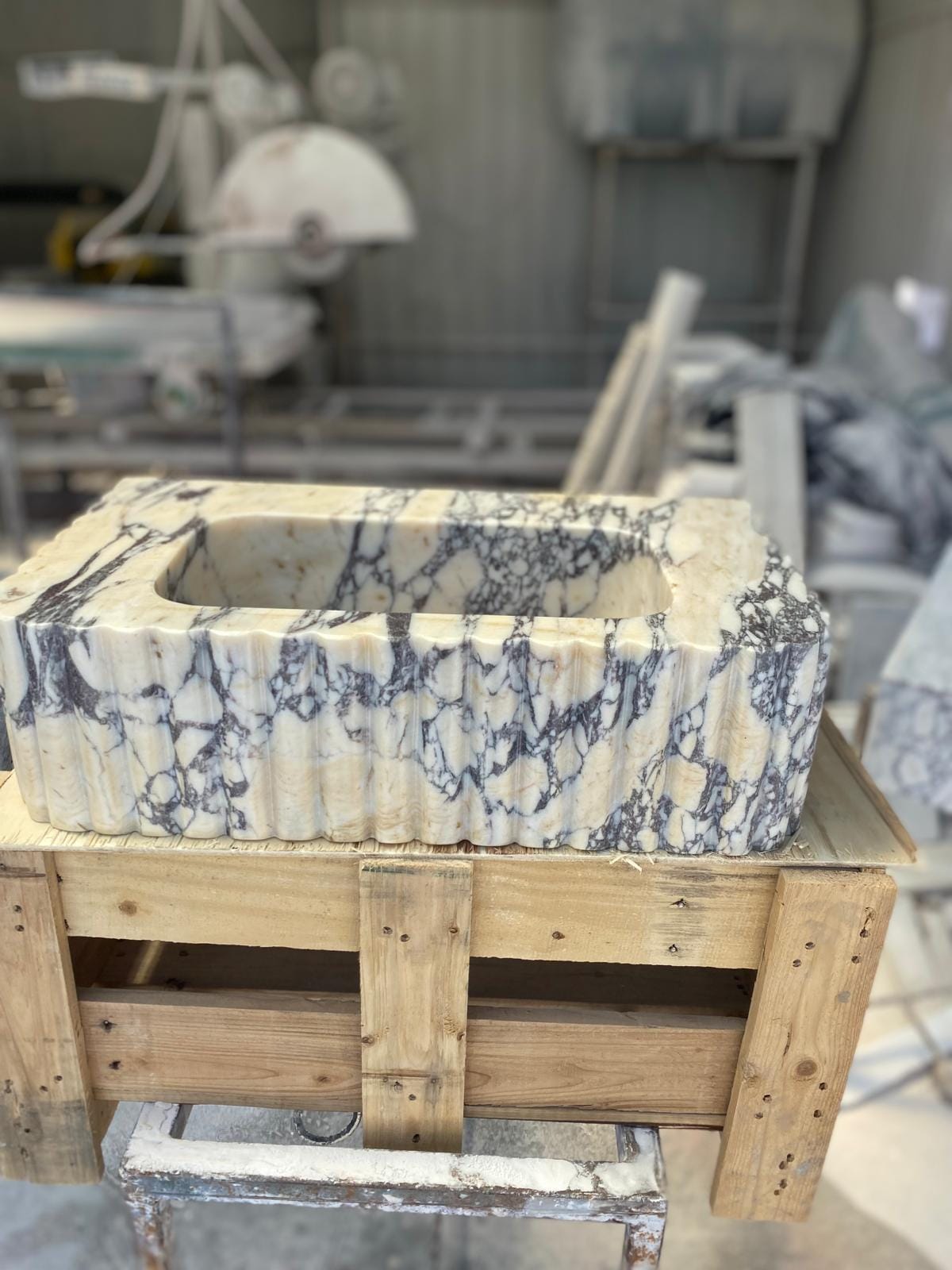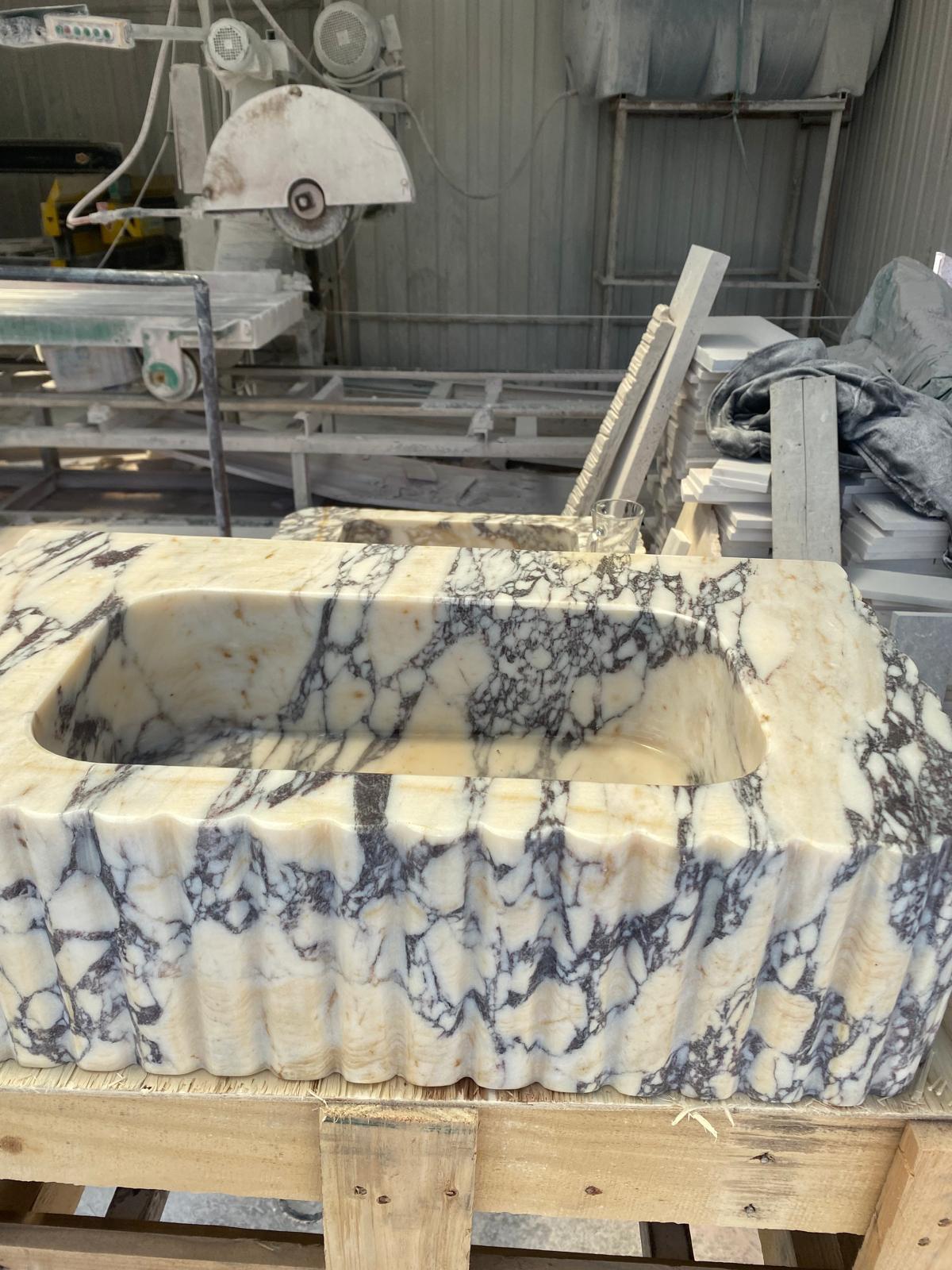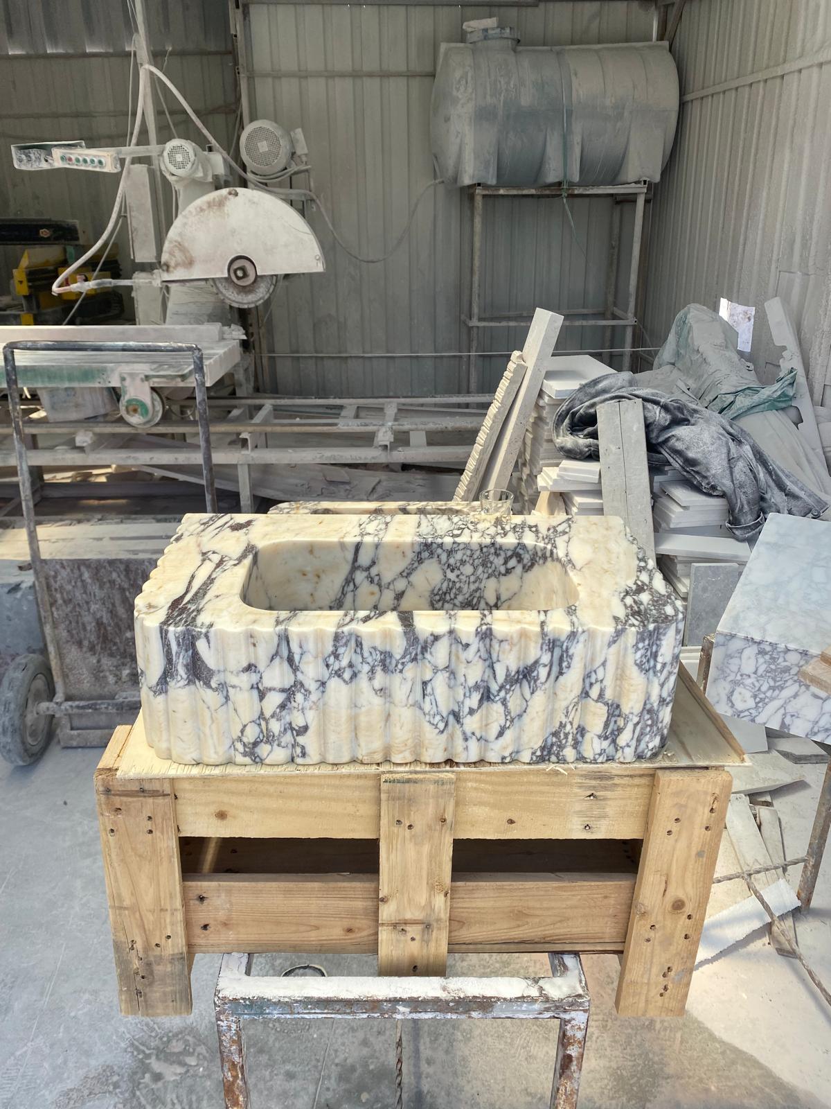 Hand-Carved Marble Sink | Fluted Front | Bold Veining | 22” x 14” x 6”