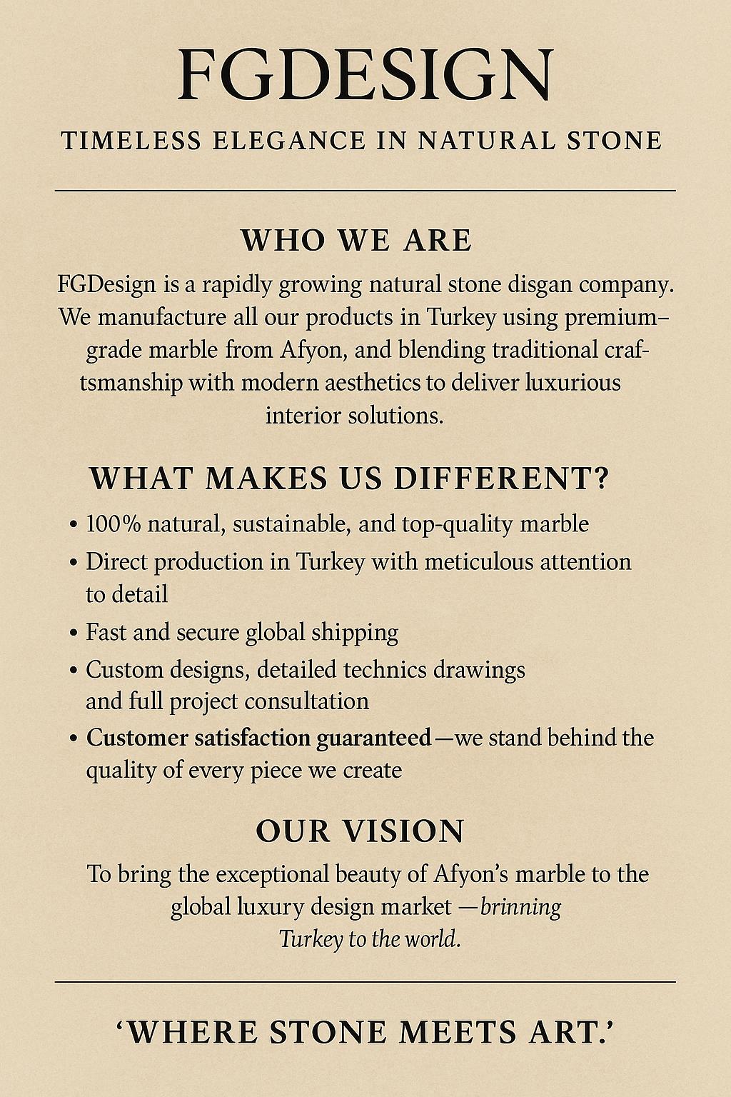 Absolutely! Each piece we create can be fully customized — including size, marble type, fluting style, backsplash height, faucet hole placement, and more. Whether you’re a homeowner, designer, or architect, we’ll tailor every detail to fit your project perfectly.
