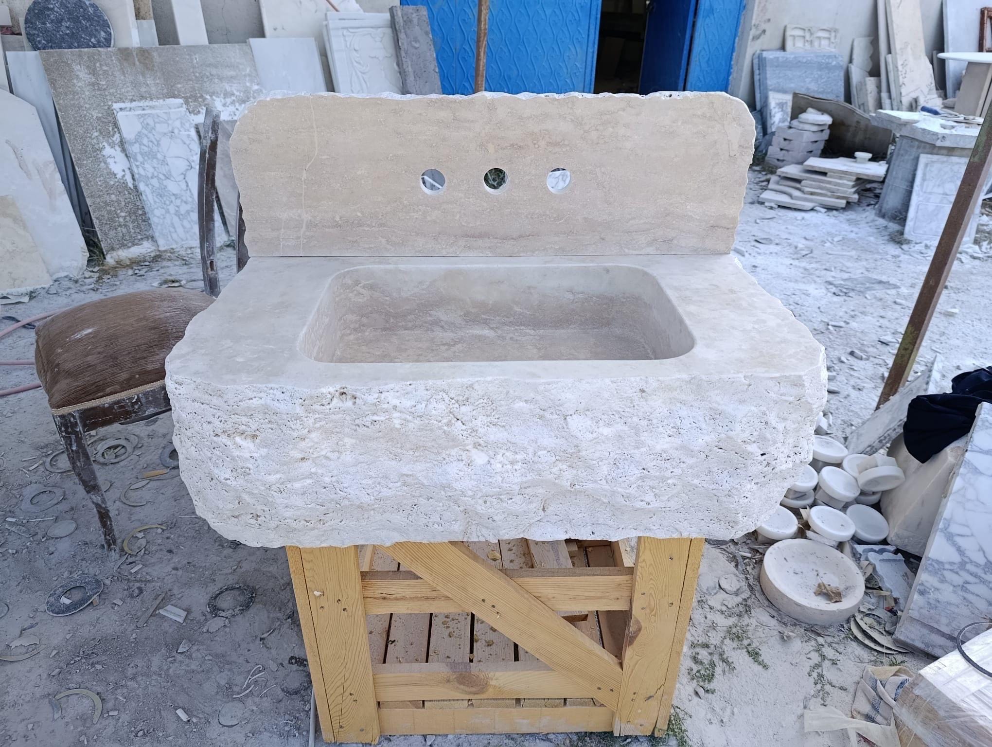 Elevate Your Bathroom with Our Handcrafted Natural Travertine Sink – A Touch of Rustic Luxury