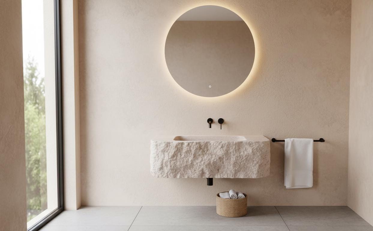 Design: Expert craftsmanship that highlights the natural texture of travertine and a sleek, minimalist form. Designed for surface mounting, ensuring straightforward installation.