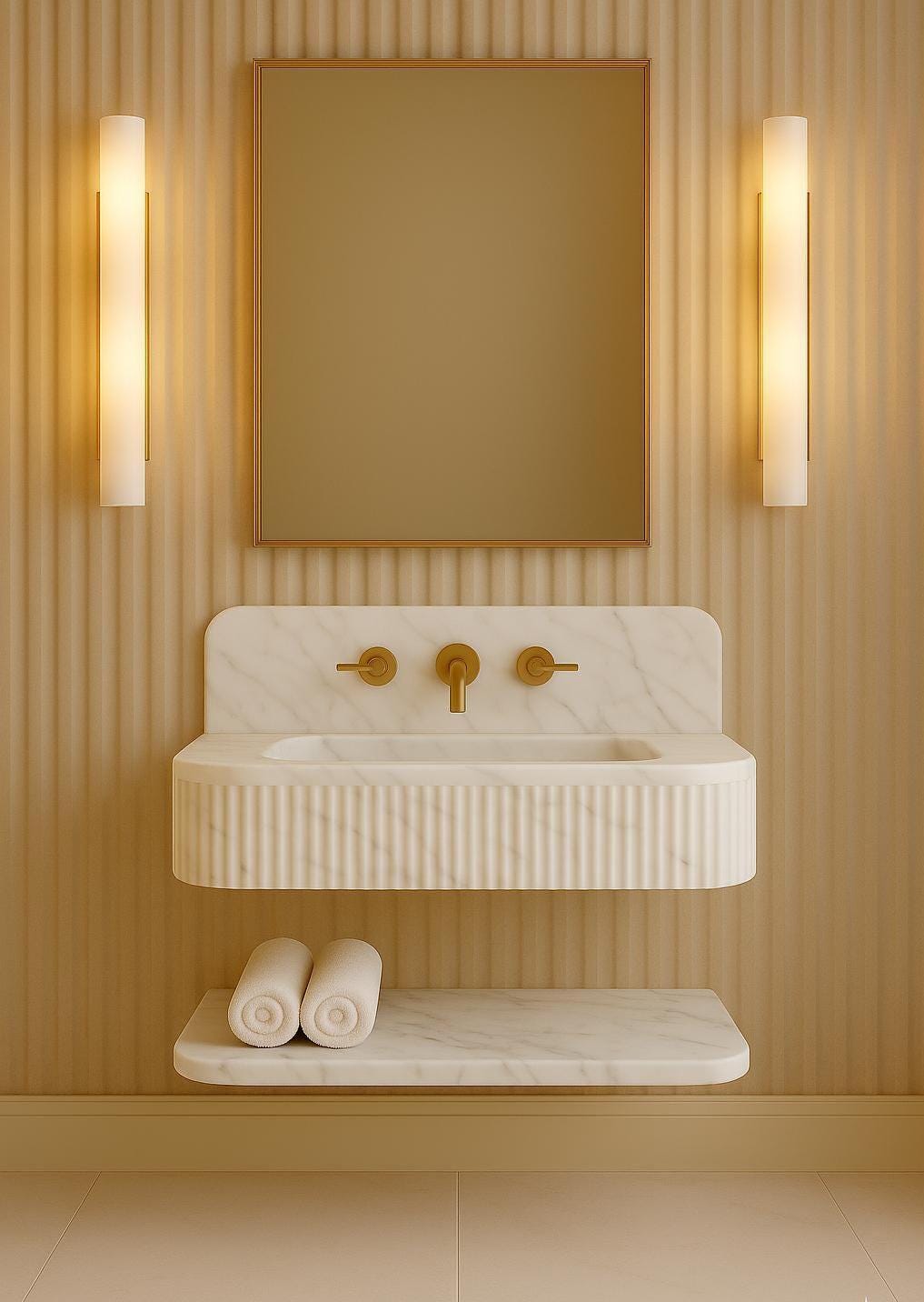 Luxury Wall-Mounted Marble Sink – Fluted Design | Calacatta White & Carrara